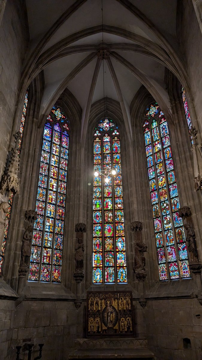 Am Samstag besuchten wir den Halberstädter Dom und den Domschatz. Der Domschatz ist berühmt für die große Sammlung von liturgischen Gewändern und wunderbaren alten Teppichen. Außerdem konnten wir viele kostbare Reliquien und Abendmahlsgeräte anschauen. Im Dom zeigte uns die Frau von der Domführung viele interessante Skulpturen, die schönen bunten Fenster aus dem Mittelalter und vieles mehr.