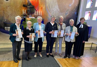Mit Brot und Weintraubensaft haben wir Abendmahl gefeiert. Zum Schuss des Gottesdienstes gab für die Jubilarinnen eine schöne Urkunde.