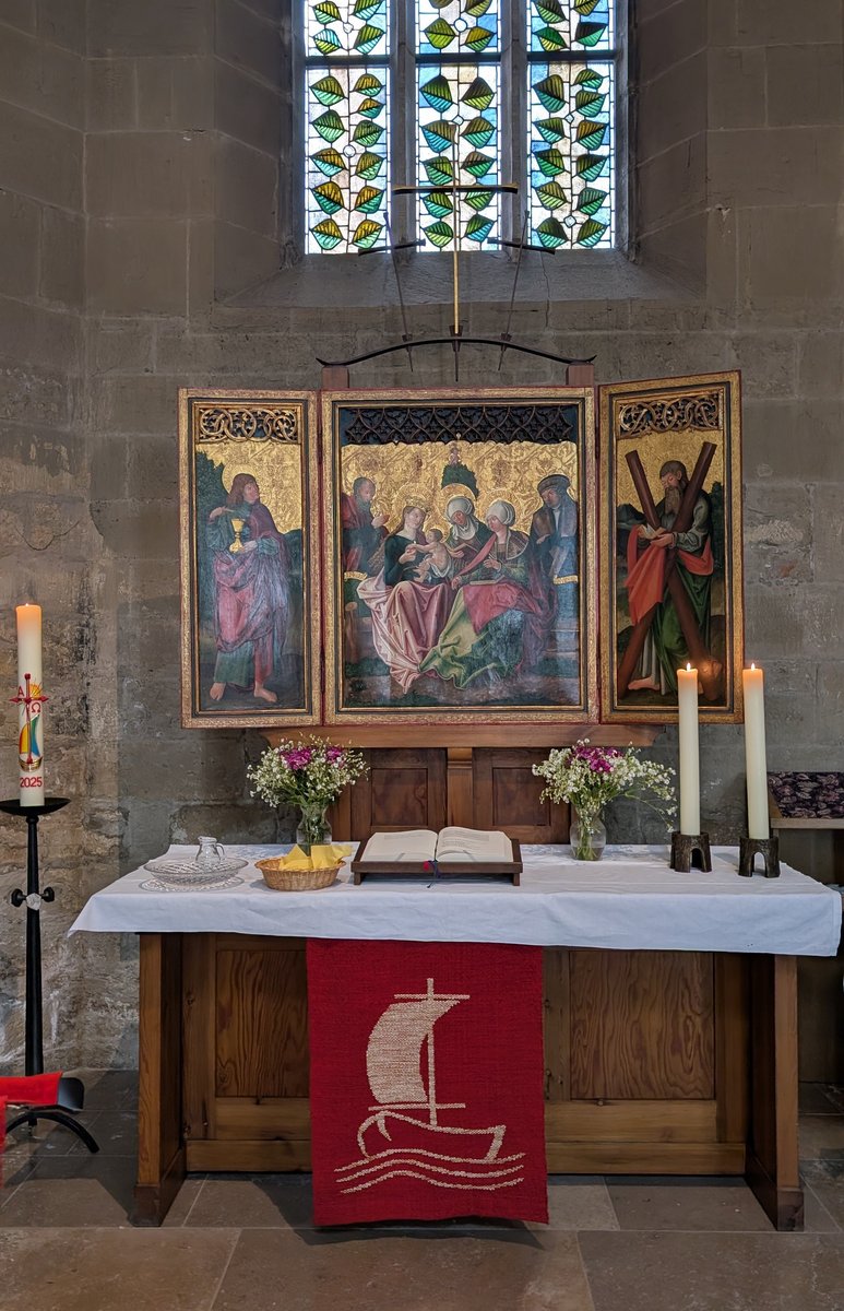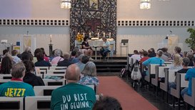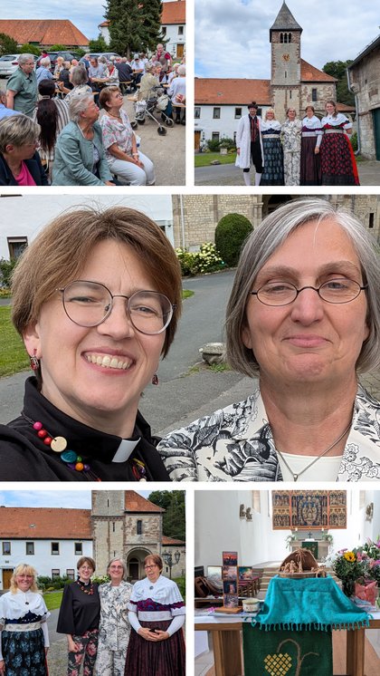 Von nah und fern sind die Menschen angekommen – von Osnabrück bis Braunschweig – in das kleinste Dorf in unserem Gestaltungsraum, in die Klosterkirche Clus. Trotz der begonnenen Ferien waren viele Besucherinnen und Besucher da. Und trotz des Ausfalls einiger Beteiligter wegen Krankheit hat alles wunderbar geklappt. Feierlich wurde der besondere Gottesdienst gefeiert.