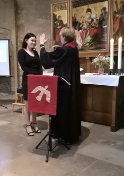 Am vergangenen Sonntag, den 15. Juni haben wir in Hildesheim in der St. Andreaskirche einen besonderen Gottesdienst gefeiert: Die Konfirmation von Jennifer. Viele Menschen sind gekommen, um mitzufeiern – Familie, Freundinnen und Freunde, Gemeindemitglieder und Gäste aus der Gehörlosengemeinschaft.