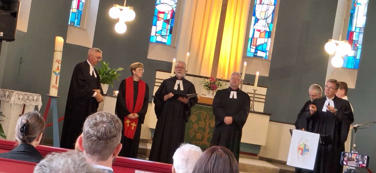 Am Sonntag den 6. Juli wurde Pastor Bernd Klein nach über 32 Jahren Dienst in einem bewegenden Gottesdienst in den Ruhestand verabschiedet. Die Feier fand in Pauluskirche zu Osnabrück statt und vereinte persönliche Erinnerungen, Dankbarkeit und viele Zeichen der Verbundenheit – in Lautsprache und Gebärdensprache. Von Nah und Ferne kamen Gäste dazu: Freunde und KollegInnen.
