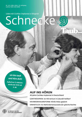Die Zeitschrift “Schnecke“ gibt viele Einblicke: (Schnecke 123: Auf ins Hören – 40 Jahre Cochlea-Implantat in Deutschland Taub und trotzdem hören – diesem Motto des Selbsthilfeverbands Deutsche Cochlea Implantat Gesellschaft e. V. widmen wir anlässlich des Jubiläumsjahres der Hörprothese in Deutschland unser Titelthema).